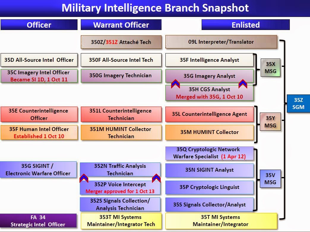 Como ya hemos tratado desde este blog el ámbito de Ciberdefensa tiene fuertes interconexiones con otros aspectos militares como la administración de sistema IT militares, la inteligencia o la guerra electrónica. Los perfiles indicados se completan con otros MOS de aquellos campos que van desde 25B especialista en tecnologías de la información, a los 35G oficial SIGINT y de guerra electrónica.